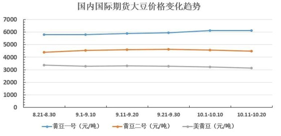 ▲图2 2021年9、10月份国内国际期货大豆价格变化趋势图